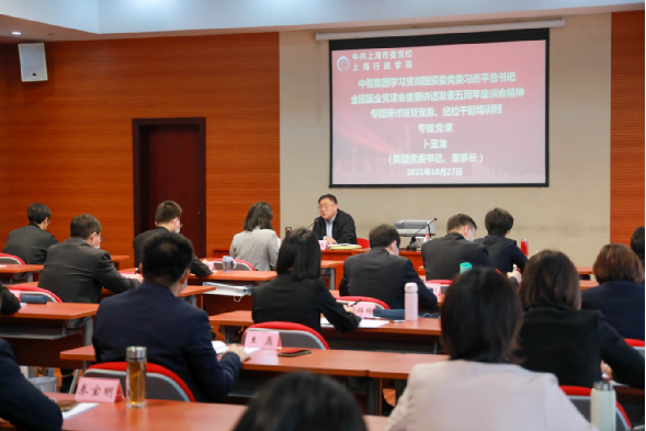 2021年10月26日,中智集團黨委書記、董事長卜玉龍在上海市委黨校(上海行政學院)為參加中智集團學習貫徹國資委黨委習近平總書記全國國企黨建會重要講話發(fā)表五周年學習座談會精神專題研討班暨黨務、紀檢干部培訓班全體學員,作了題為《提高政治站位,把握時代要求,切實提高國企黨建質(zhì)量》的黨課輔導,他指出,要持續(xù)深化學習貫徹習近平總書記全國國企黨建會重要講話精神,按照國資委黨委“八個牢牢把握”相關要求,扎實做好集團改革發(fā)展和黨的建設各項工作,鞏固擴大工作成果,全面提高黨的建設質(zhì)量水平,更好引領保障高質(zhì)量發(fā)展。集團總經(jīng)理助理,中智上海公司黨委書記、副總經(jīng)理李雙主持。